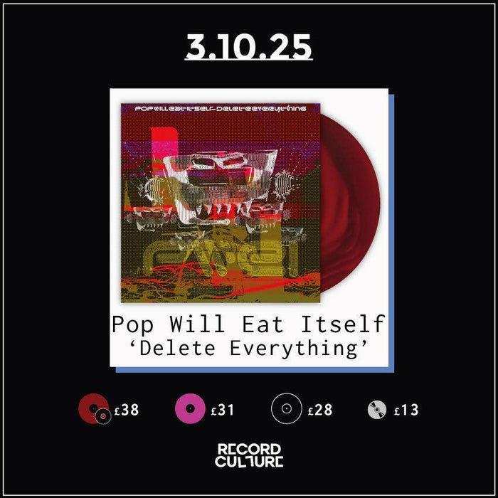 Formed in the mid-eighties Midlands, they are still not only eating pop but spewing it up in a chaos of thrilling ideas on new album Delete Everything. Their eighth record sees them further refine, define and deconstruct their melange of industrial rock, loop da loop techno, gonzoid hip hop and punk rock into a series of captivating sci-fi anthems. The band still look and sound like they have stepped out the pages of 2000 AD magazine with Graham Crabb and Mary Byker trading vocals like bouncing Duracell bunnies to the itching, compulsive beats surrounding them. Davey Bennett brings the bottom end and Cliff Hewitt plays the beats whilst Adam Mole delivers guitar aggro and sometimes waves his keyboard around with a delinquent glee. Still creative, still in a world of their own Pop Will Eat Itself have deleted everything and started all over again.
