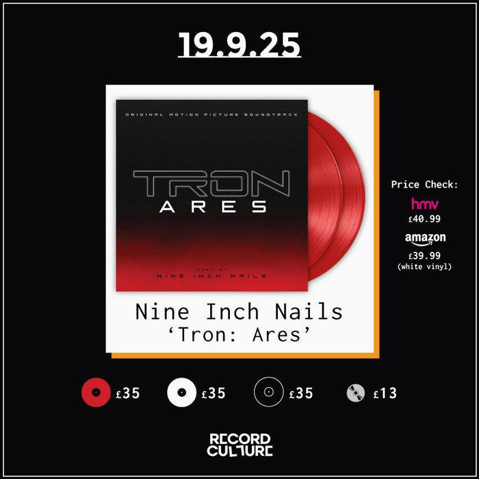 Nine Inch Nails returns with over 70 minutes of new music for the motion picture TRON: Ares, the first soundtrack / score work from Trent Reznor and Atticus Ross that will live under the Nine Inch Nails moniker; consisting of all original music, complete at 24 tracks. Reznor and Ross bring their Grammy and Oscar-winning sonic vision to the Grid, crafting a soundtrack that hums with menace, melancholy, and momentum. More than an album, its architecture in sound: pulsating synths, distorted textures, and haunting melodies that rewire the TRON universe from the inside out. It is the collision of analog soul and digital dread—a score that doesn't just accompany the film, it possesses it.